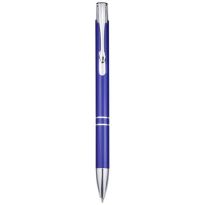 Schlanker Drehkugelschreiber aus Metall mit blau schreibender Cross-System-Mine. Ihre Werbung wird rechts vom Clip gelasert.