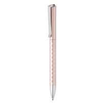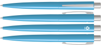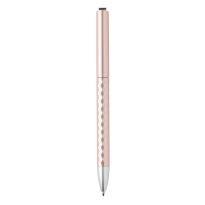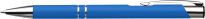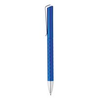 Blauschreibender Aluminium-Kugelschreiber mit Metallclip und gummierter Spitze für das Bedienen von Touchscreens (wie iPhone/iPad). Der Halter ist mit einer schönen gummierte Soft-Touch-Oberfläche versehen. Auf dem Vorderteil ist ein spielerisches Relief angebracht, das für einen festen Griff sorgt. Bei diesem Stift wurde viel Wert auf kleine zusätzliche Details gelegt. Das macht sein Design auffallend attraktiv.