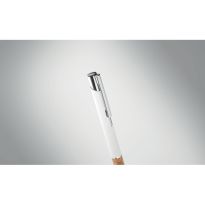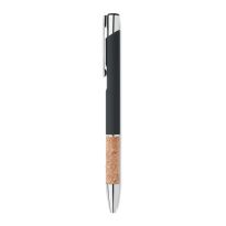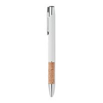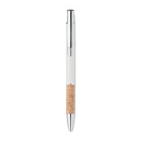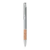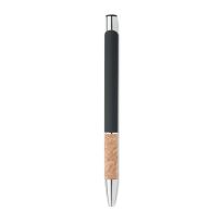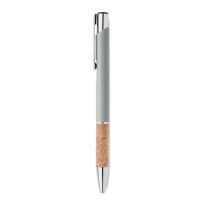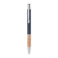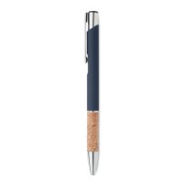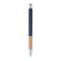 Druckkugelschreiber. Aluminium mit Griffteil aus Kork. Blaue Tinte.