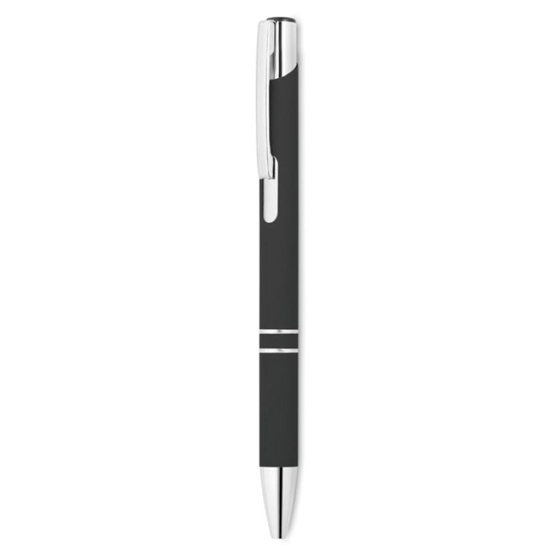 Werbeartikel Beschreibung: Druckkugelschreiber in gummiertem Finish. Blaue Tinte.