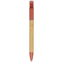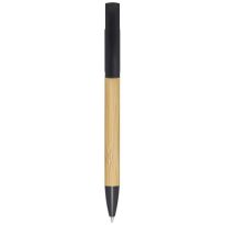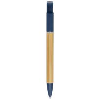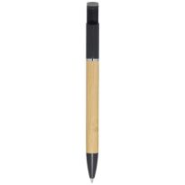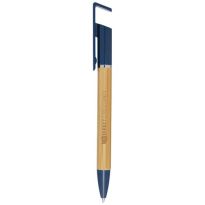 Bamboo-Kugelschreiber, der auch als Telefonhalterung fungiert. Der Knopf und der Mittelring bestehen aus recyceltem Kunststoff, die Spitze aus Messing und der Schaft aus nachhaltig angebautem Bambus. Tintenfarbe: Blau. Schreiblänge: 1000 Meter. Strichstärke: 1,0 mm.