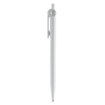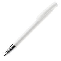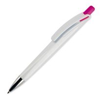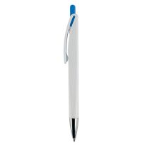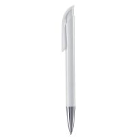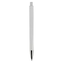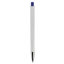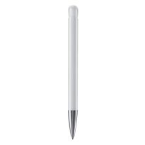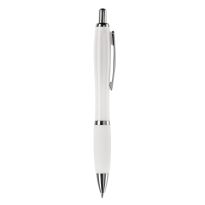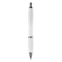 Weißer Kugelschreiber mit Metallclip, metallisierter Drücker, Ring und Spitze. Blauschreibende Jumbo-Mine. Mechanismus: DruckmechanismusStandardschreibfarben: blauMinenart: Plastic jumbo refill