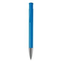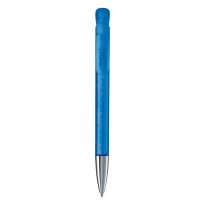 Transparenter Kunststoffkugelschreiber mit Metallclip und blauschreibender mit X20-Mine. Mechanismus: DruckmechanismusStandardschreibfarben: blauMinenart: X-20