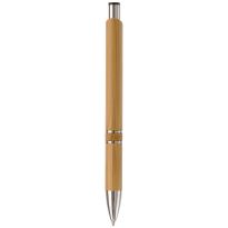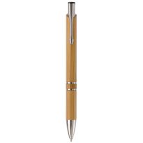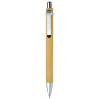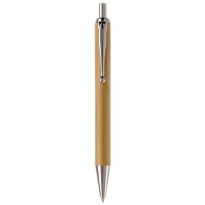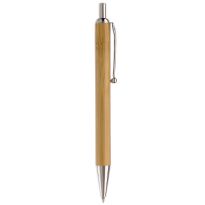 Kugelschreiber aus Bambus Material mit einem Metallclip, metallisiertem Drücker und metallisierter Spitze. Die Standard Schriftfarbe ist blau. Mechanismus: DruckmechanismusStandardschreibfarben: blauMinenart: Plastic giant refill