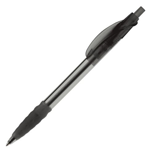 Schlanker Toppoint Kugelschreiber mit Bogenclip und Gummimanschette. Made in Germany. Ausgestattet mit einer X20-Mine, blauschreibend. Schreibleistung 2,5km. Transparent.