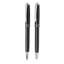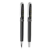 Schreibset BLACK SWAN : bestehend aus Metall-Kugelschreiber (blauschreibend) mit Drehmechanismus und Metall-Tintenroller (schwarzschreibend) Geschenkbox