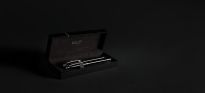 Schreibset aus Metall, bestehend aus Kugelschreiber und Rollerball (schwarze Mine), Metall-Clip und -Spitze und Etui mit Magnetverschluss. Provided with German Dokumental Ink.