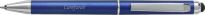 Touchscreen-Drehkugelschreiber "Pluto", mit Gummispitze und Softgripzone, Mine X-20, blau schreibend.