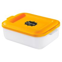 Frischhaltebox in verschiedenen Farbkombinationen lieferbar. Mikrowellengeeignet bis zu +120°C. Mit Deckel und 2 praktischen Haltegriffen. Füllmenge: 1,5 Liter.