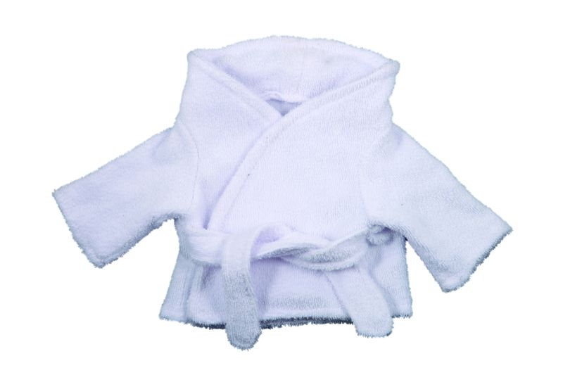 Werbeartikel Beschreibung: Bademantel Gr. M, zum Anziehen von Plüschartikeln. Zwischen 2 Saunagängen, nach einem heißen, erholsamen Bad oder vor einer entspannenden Massage... Mit diesem weißen Bademantel ist ein Plüschtier angezogen genug, um auf seine nächste Wellness-Behandlung zu warten oder um einfach nur total tiefenentspannt herumzusitzen.