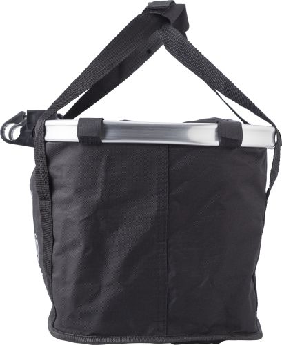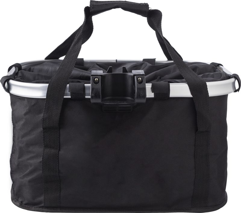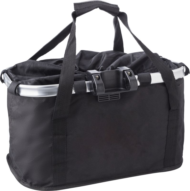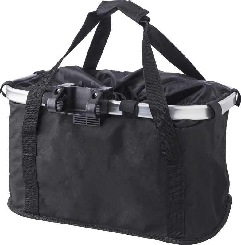 Werbeartikel Beschreibung: Fahrradtasche aus Polyester (600D), welche mit einem Ring und Klettverschluss an den den Fahrradlenker befestigt werden kann. Die Tasche hat einen Tunnelzug, Tragegriffe und einen Schultergurt.