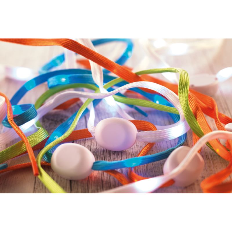 Werbeartikel Beschreibung: 2 Schnürsenkel mit Licht (inklusive Batterien). 120 cm Länge pro Schnürsenkel. Nylon.