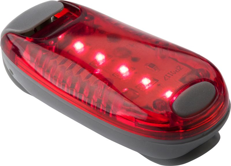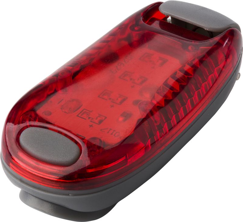 Werbeartikel Beschreibung: Sicherheitslicht mit zwei Einstellungen: konstant und blinkend, mit Befestigungsclip und Klettverschluss um das Licht zu befestigen.