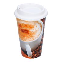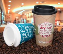 Doppelwandiger Coffee-To-Go-Becher aus BPA-freiem Kunststoff. Praktisches Modell mit Schraubdeckel, ausgestattet mit Trinköffnung. Passt in den Standard-Trinkbehälter von Autos, was praktisch für unterwegs ist. Wiederverwendbar. BPA-frei und geeignet für Levensmittel. Fassungsvermögen 250 ml. Made in Germany. Die Oberfläche eignet sich ideal für den iMould-Vierfarben-Aufdruck (wasser-, kratz-, farb- und UV-beständig) in jedem gewünschten Design. Mindestbestellmenge pro Farbe 500 Stück.
