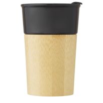 Doppelwandiges Borosilikatglas mit Henkel. Deckel aus Bambus. Füllmenge: 250 ml.