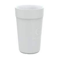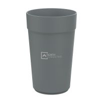 Becher mit griffiger Struktur. Standardmäßig in vielen verschiedenen Farben erhältlich. Ohne Untersetzer. Füllmenge: 0,4 Liter.