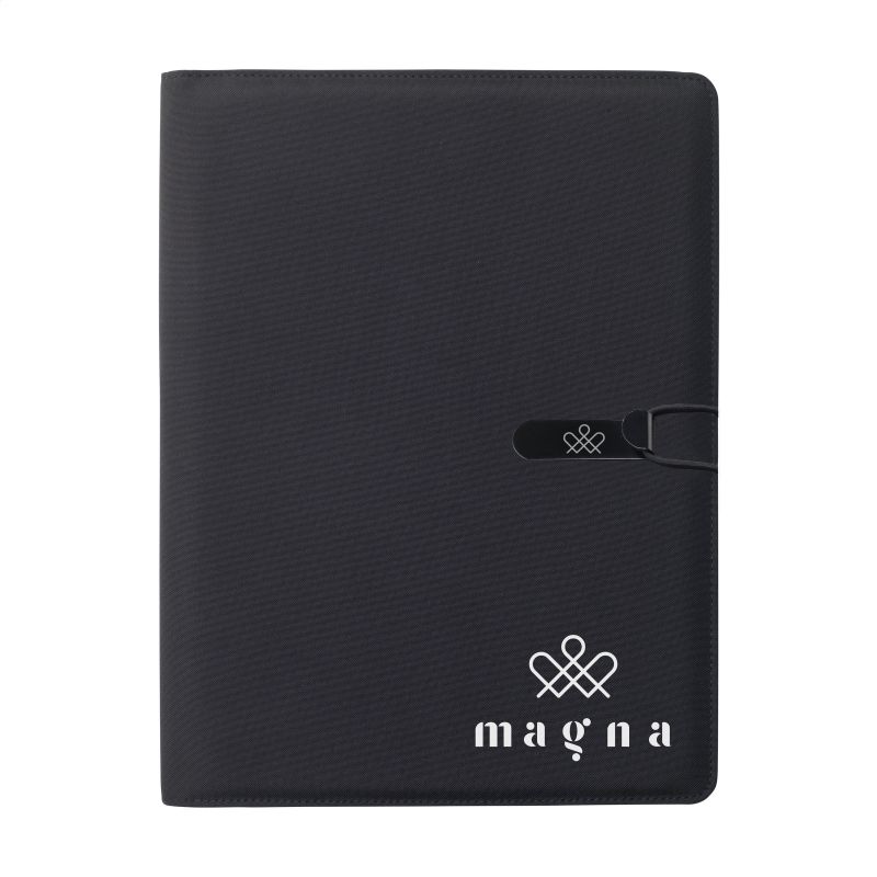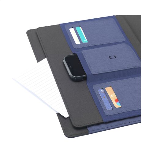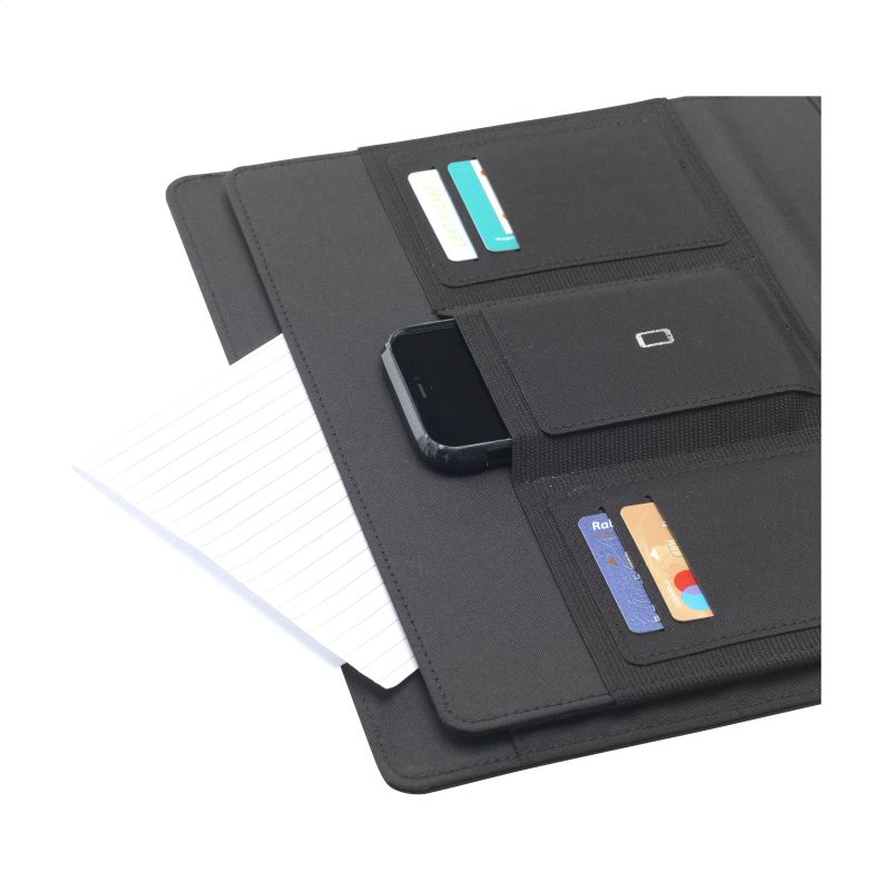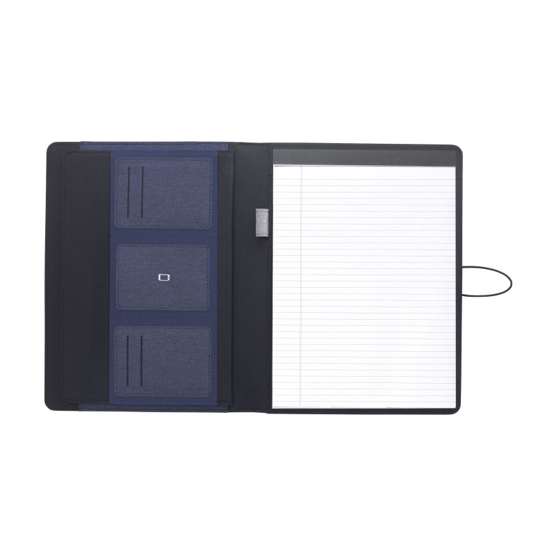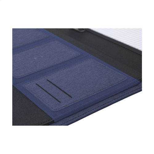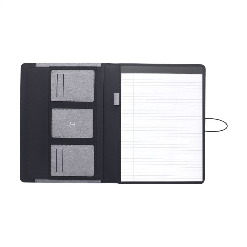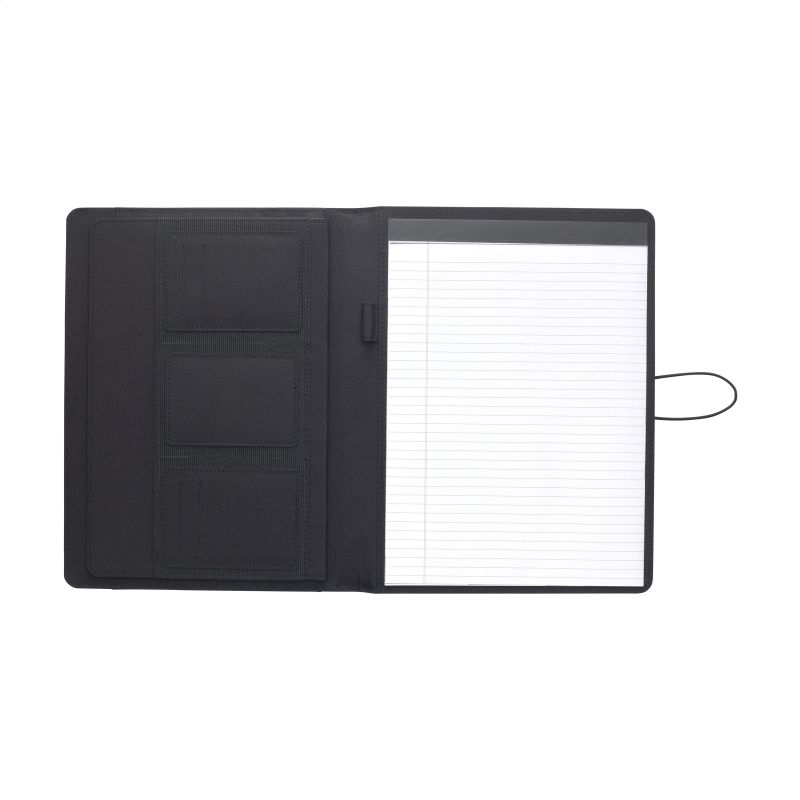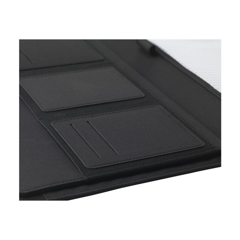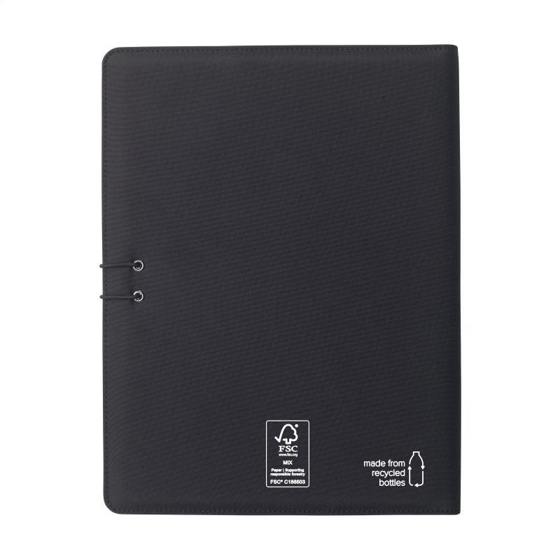 Werbeartikel Beschreibung: WoW! Moderne Schreibmappe/Dokumentenmappe aus RPET-Material im A4-Format. Ausgestattet mit mehreren Einsteckfächern, darunter ein separates Fach zur Aufbewahrung eines Mobiltelefons, sowie einer Stiftschlaufe. Inkl. Schreibblock mit 20 Blatt FSC® zertifiziertem, weißem, liniertem Papier (70 g/m²). RCS-certified. Total recycled material: 6%.