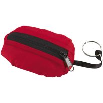 Faltbare Einkaufstasche aus 190T Polyester. Im Etui mit Druckknopf und Karabinerhaken. Maße entfaltet: 38 x 53 cm.