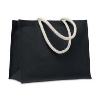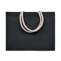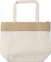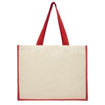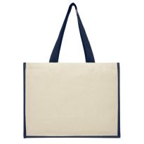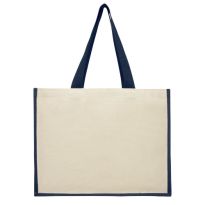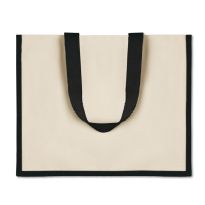 Einkaufstasche aus Baumwolle (280 g/m2) mit Jutebesatz am Boden. Mit großen gedrehten Baumwollgriffen.