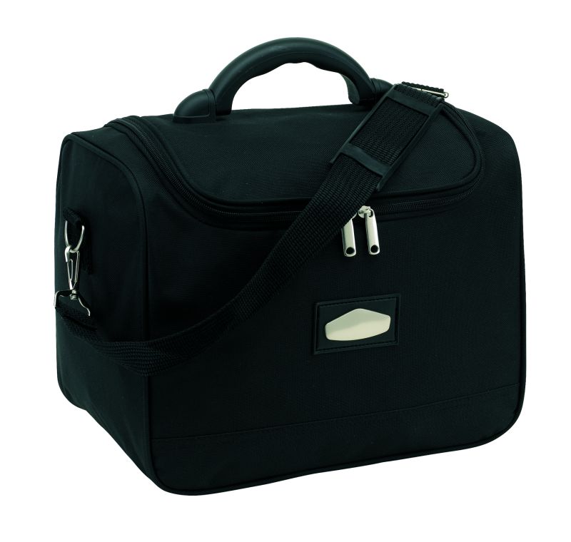 Werbeartikel Beschreibung: Kosmetiktasche LASER PLUS : mit Reißverschluss-Hauptfach, auswechselbarem Metalllogo, ABS-Tragegriff, inkl. verstell- und abnehmbarem Gurt mit Schulterpolster