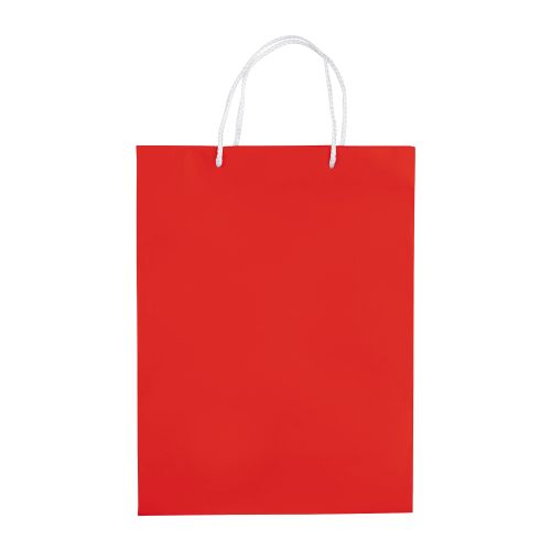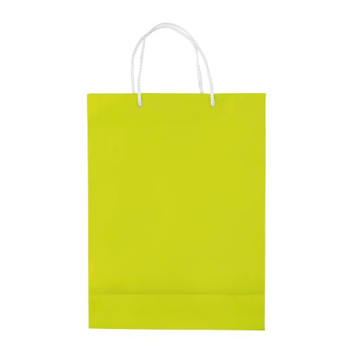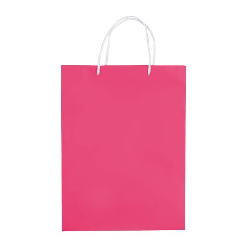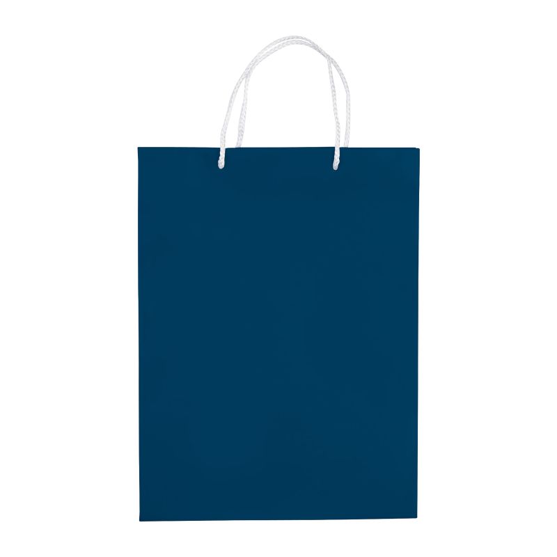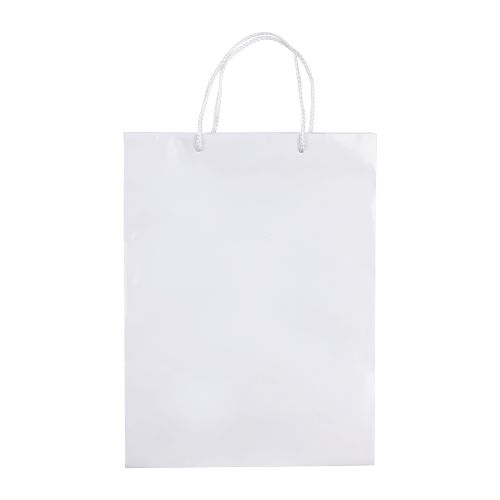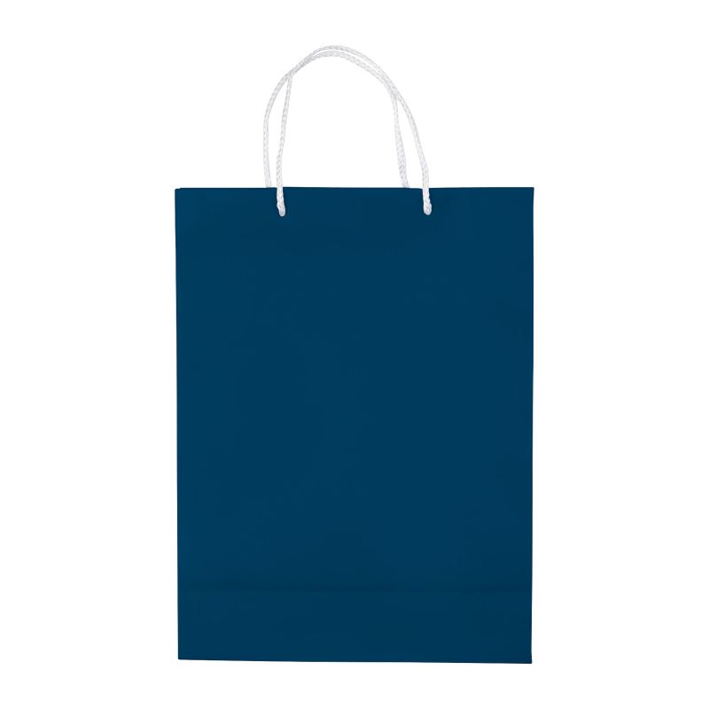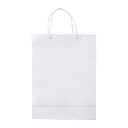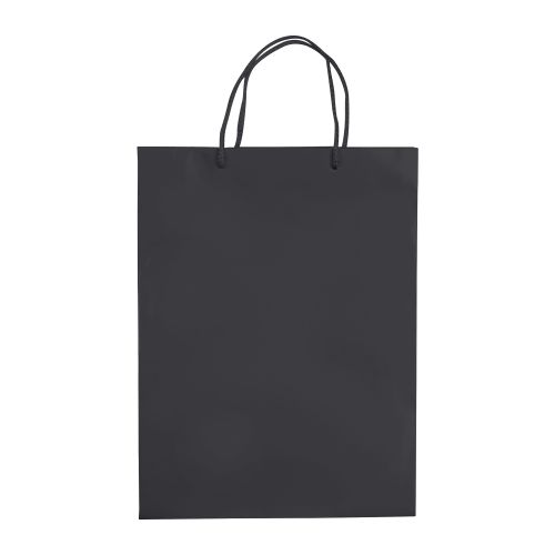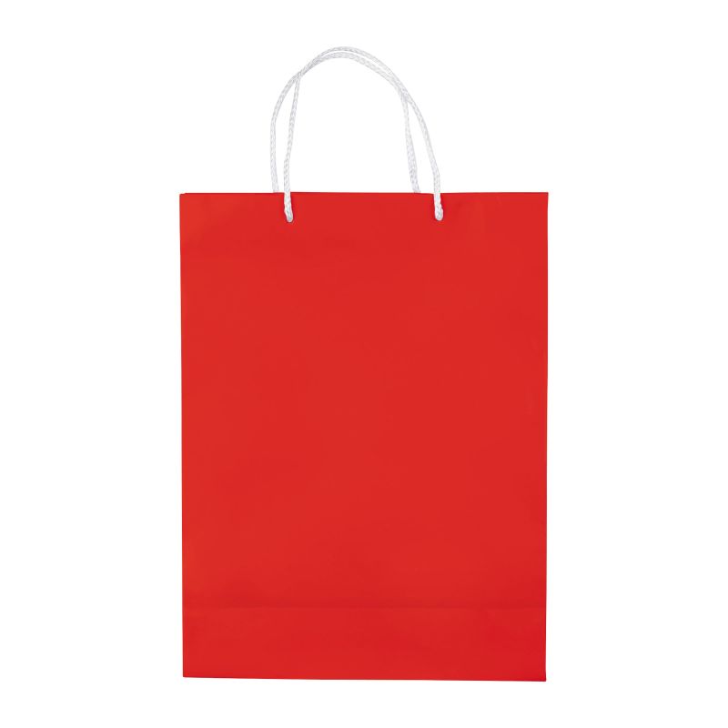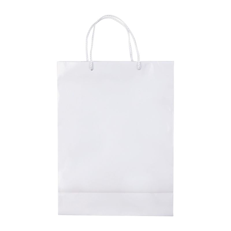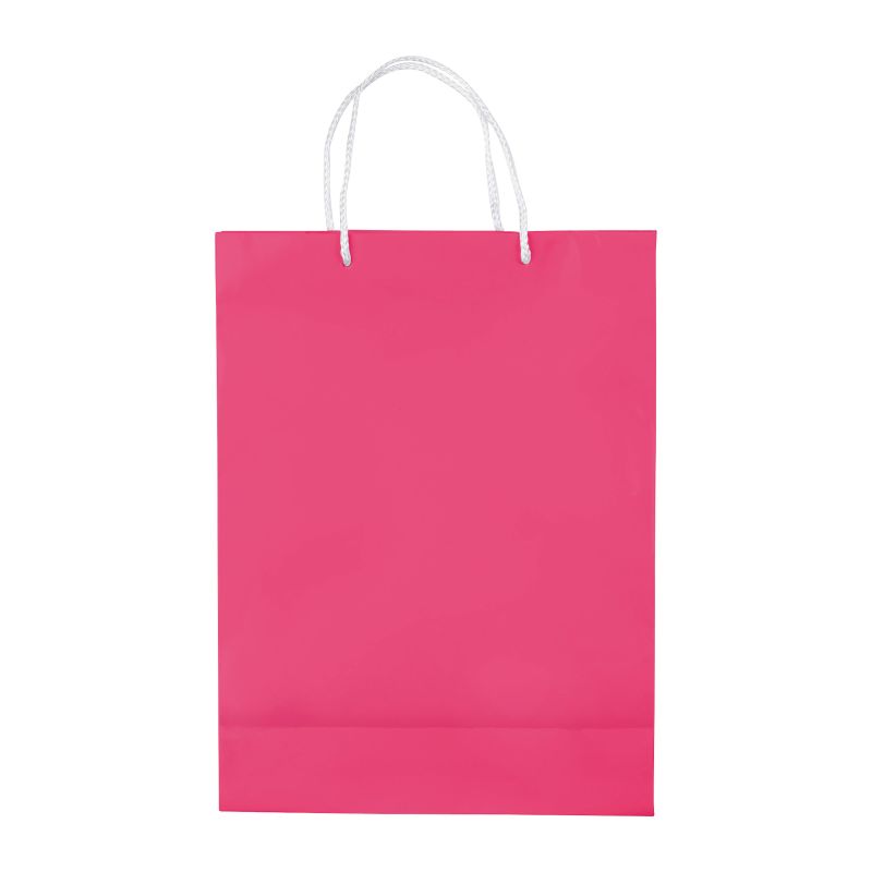 Große Papiertüte mit Seilgriffen. Erhältlich in mehreren Farben mit weißen/schwarzen Griffen. Große Druckfläche auf beiden Seiten. Starke Tasche. Glänzende Laminierung.