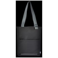 Einkaufstasche aus Polyester (100D) mit zwei langen Griffen. Die Tasche ist reflektierend.
