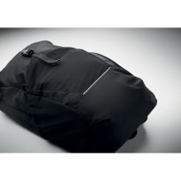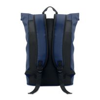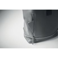 Rucksack mit Rollverschluss aus reflektierendem 190T-Polyester. Laptopfach, Innenfach mit Klettverschluss, seitliche Reißverschlusstasche. Gepolsterter Rücken, Schultergurte und Boden. Unterer Teil aus recyceltem 600D Polyester.