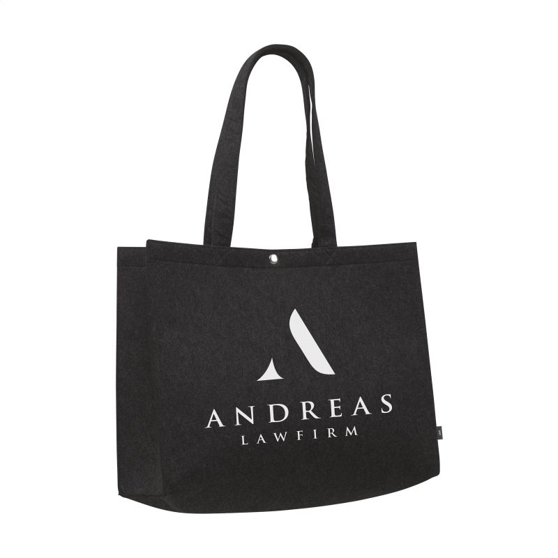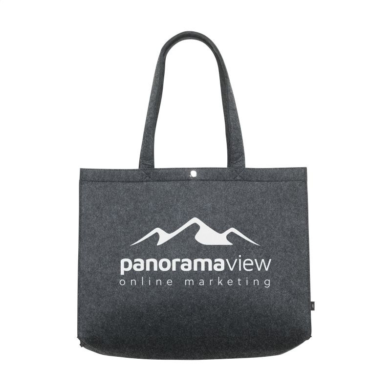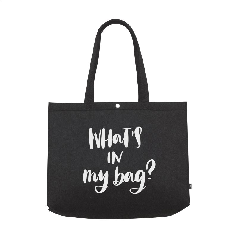 Werbeartikel Beschreibung: WoW! Coole, geräumige Einkaufstasche aus RPET-Filz. Diese Tasche bietet äußerst viel Platz und ist mit langen Griffen und einem Druckknopf ausgestattet. Das Material ist von hoher Qualität. GRS-zertifiziert. Gesamtes recyceltes Material: 95%. Fassungsvermögen ca. 20 Liter.