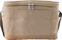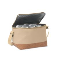 Kühltasche aus rPET-Polyester (600D). Boden aus Kork. PEVA-Innenseite. Kleine Tasche auf der Vorderseite. Verstellbarer Gurt. Mit rPET-Etikett.