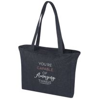 Große Shopping oder Strand-Tasche aus 600D RPET mit langen Tragegriffen und Bodenfalte.