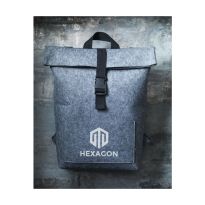 13'''' Laptop Rucksack aus RPET-Filz. Großes Hauptfach und Reißverschlussfach. Gepolsterte Rückseite und gepolsterte Schultergurte. Trolley-Halterung.