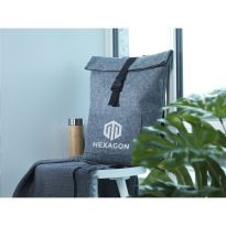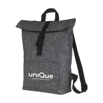 WoW! Robuster, praktischer „Roll-Top“-Rucksack aus stabilem RPET Filz. Der Rucksack hat ein geräumiges Innenfach und eine Tasche vorne. Mit Trageschlaufe, Rollverschluss und praktischem Klicksystem. GRS-zertifiziert. Gesamtes recyceltes Material: 80%. Fassungsvermögen ca.15 Liter.