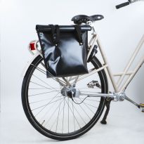 Fahrradtasche der Marke Fraenck, hergestellt aus upgecyceltem Segeltuch. Das robuste und wasserabweisende Material stammt aus upgecycelten Stoffresten der Segelindustrie. Der Rollverschluss kann aufgerollt und mit Verschlussclips gesichert werden. Beide Seiten der Tasche sind mit Schrägband verstärkt. Die Innenseite hat einen verstärkten Boden und Rücken. Einfach am Fahrradträger zu befestigen. Made in Holland.