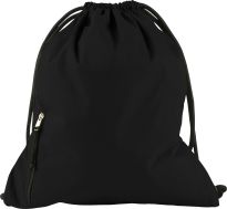 Großer Beutel mit Kordelzug. Seitliche Reißverschlusstasche. 300D RPET-Polyester