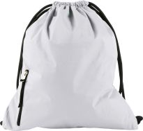 Rucksack aus grauem, reflektierendem, fluoreszierendem und wasserabweisendem Nylon. Speziell beschichtet. Mit Zugkordel und verstärkten Ecken. Damit sind Sie beim Spazierengehen oder Radfahren im Dunkeln sichtbar. Fassungsvermögen ca. 8 Liter.