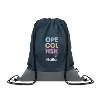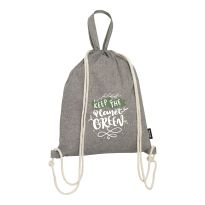 Beutel mit Kordelzug aus recycelter Pre-Consumer-Baumwolle (70 %) und RPET (30 %). 140 g/m². Artikel kann nach dem Bedrucken schrumpfen.