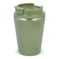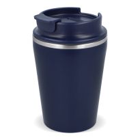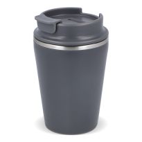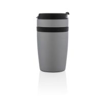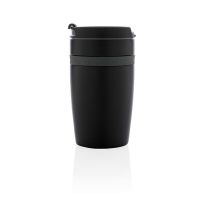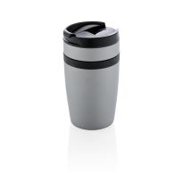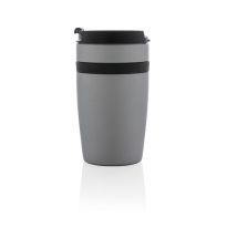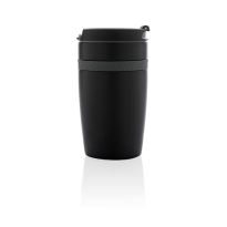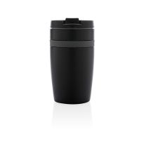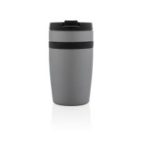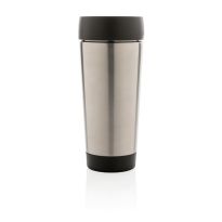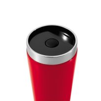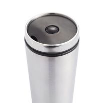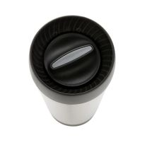 350ml Becher aus Edelstahl, innen Kunststoff, mit Push-Knopf zum dichten Verschließen des Bechers, geeignet zur einhändigen Bedienung. Geschütztes Design®
