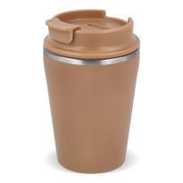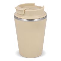 Isolierbecher DARK CREMA , doppelwandig: innen und außen aus Edelstahl, Kunststoff-Deckel mit sicherem Schraubverschluss und integrierter Trinköffnung zum Aufklappen, farbig-gummierte Manschette oben sowie gummierter Standfuß für gute Bodenhaftung, Füllmenge ca. 400 ml