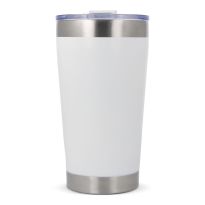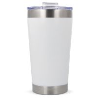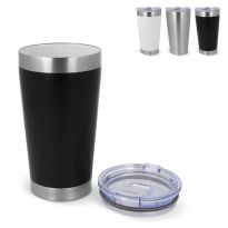 Doppelwandiger Becher aus Edelstahl mit PS Deckel mit Trinköffnung. Spezielle Beschichtung für Sublimationsdruck. Füllmenge: 590 ml.