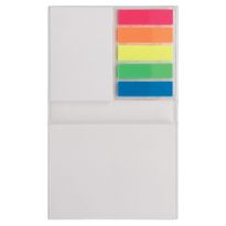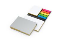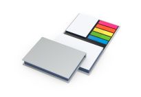 Haftnotizen aus Karton, mit Visitenkarten-Einsteckfach, 25 Haftnotizstreifen in 5 Farben und Haftnotizzettel, inklusive Verschlussband.
