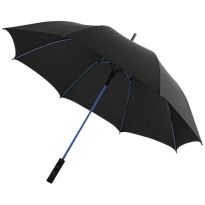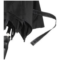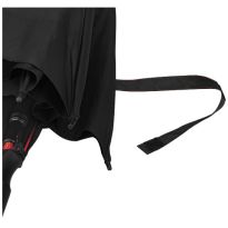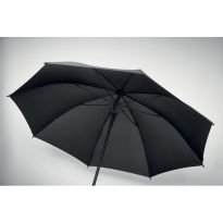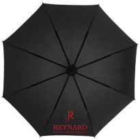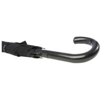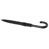 Selbstöffnender Regenschirm mit Pongee Polyester Baldachin und einem stabilen schwarz beschichteten Metallschaft. Die hochwertigen Speichen aus Vollglasfaser bieten maximale Flexibilität bei windigen Bedingungen. Gebogener Griff in Karbonoptik mit schwarz vernickelten Spitzen. Luxe Markendetails auf dem gewebten Etikett auf Baldachin und Verschlussriemen. Große Werbeanbringungssfläche auf jedem Paneel.