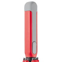 Eleganter Automatik-Regenschirm aus 190T Pongee mit angenehmem Softgriff. Der Saum sowie auch der untere Teil des Griffs ist in trendigen Farben abgesetzt. Die Werbeanbringung erfolgt durch einen Druck auf ein Segment. Mehrfarbiger Druck wird im Siebdrucktransfer angebracht (Druckgruppe TT3).