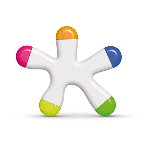 Auffälliger Textmarker in Form eines Klecks mit fünf verschiedenen Schreibfarben. Werbeanbringung auf dem Korpus. Ein besonderer Werbeträger, da die Form von Toppoint designed wurde.
